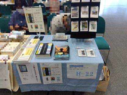 札幌川柳社の方々、『水脈』の同人の方などが、次々に来てくださり、ご挨拶をしたり、一緒に写真撮影をしたり、雑談をしたり……少し離れたところに札幌川柳社のブースもあったので、そちらに行くついでにこちらに来てくださった方も多いようでした。『ときどき放課後、ときどきパラソル』や『群蝶ミニ川柳選書』を買ってくださる方も多く、特に『群蝶ミニ川柳選書』は全9種類セットが良く売れて、バラで持ってきたものをセットにまとめ直す作業が必要になりました。